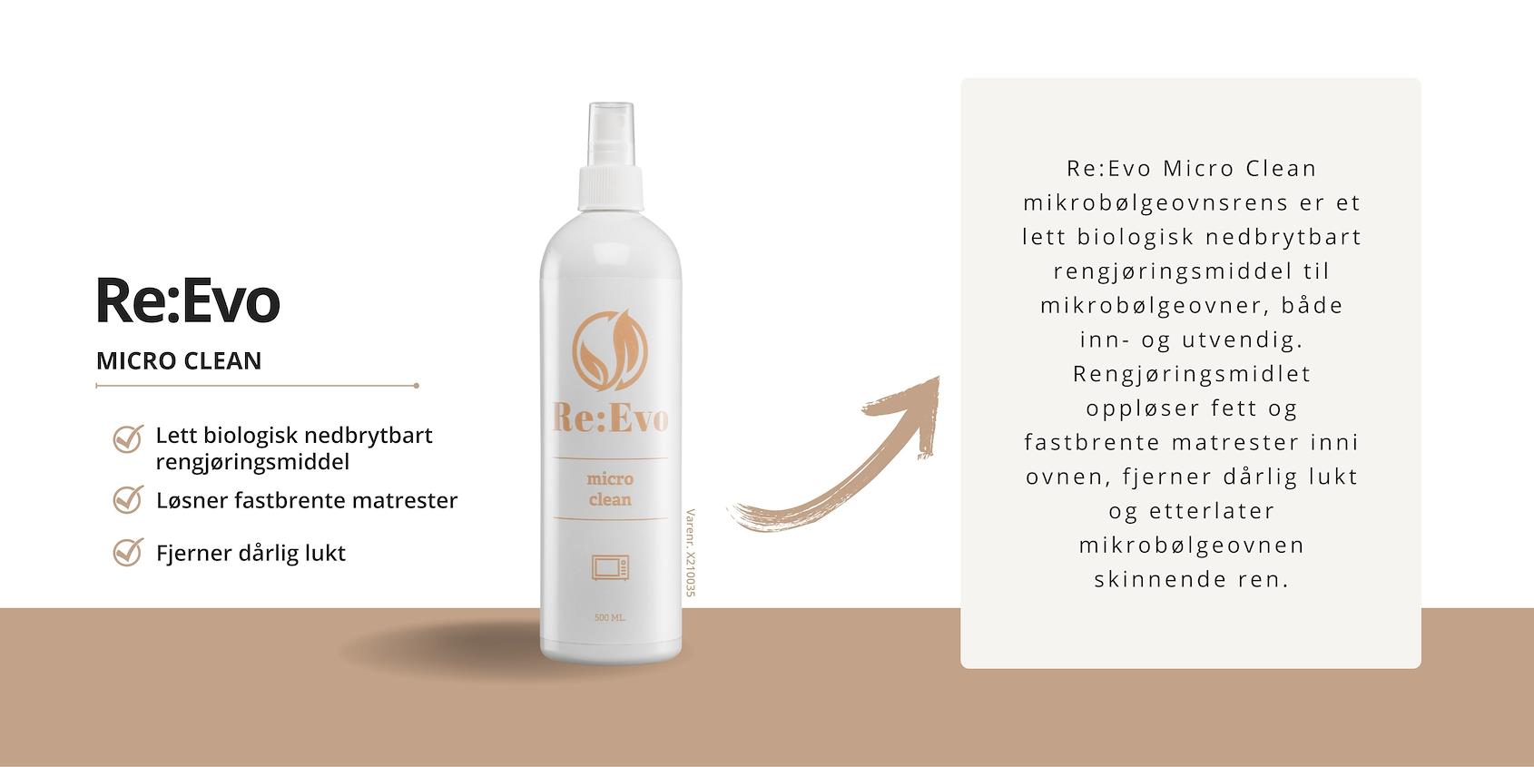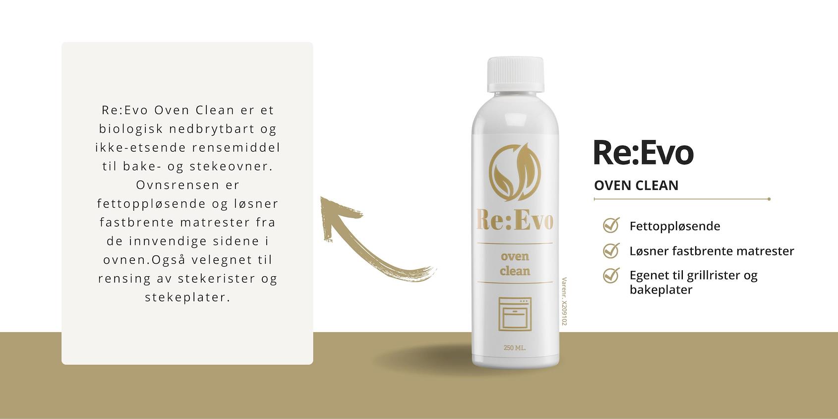 Våre biologisk nedbrytbare rengjøringsmidler fjerner matrester og belegg uten anstrengelse, samtidig som de skåner miljøet. Enten det er ovnen, mikrobølgeovnen, kjøleskapet eller vaskemaskinen, er Re:Evo-produktene den ultimate løsningen.