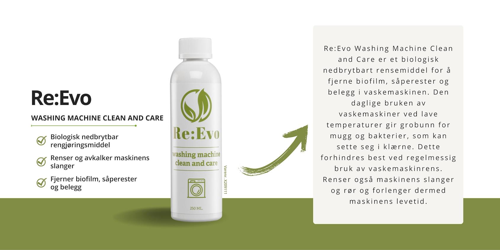 Re:Evo er den ultimate grønne pleieserien, hvor effektiv rengjøring møter miljøbevissthet. Vårt omfattende produktutvalg er utviklet med mål om å beskytte og forlenge levetiden til dine husholdningsapparater, samtidig som de skåner miljøet.